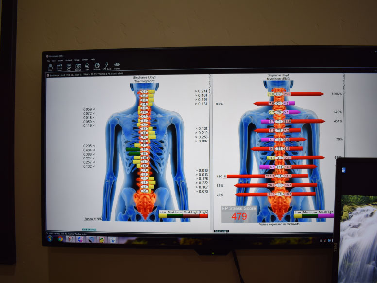 He will then go over the results with you in detail. He will provide you with a clear explanation of what is going on with your body including how the nerves can affect muscle, organ and tissue function. Even an explanation as to what things might be causing you to have symptoms like headaches, heartburn, sciatica, and hip and lower back pain.