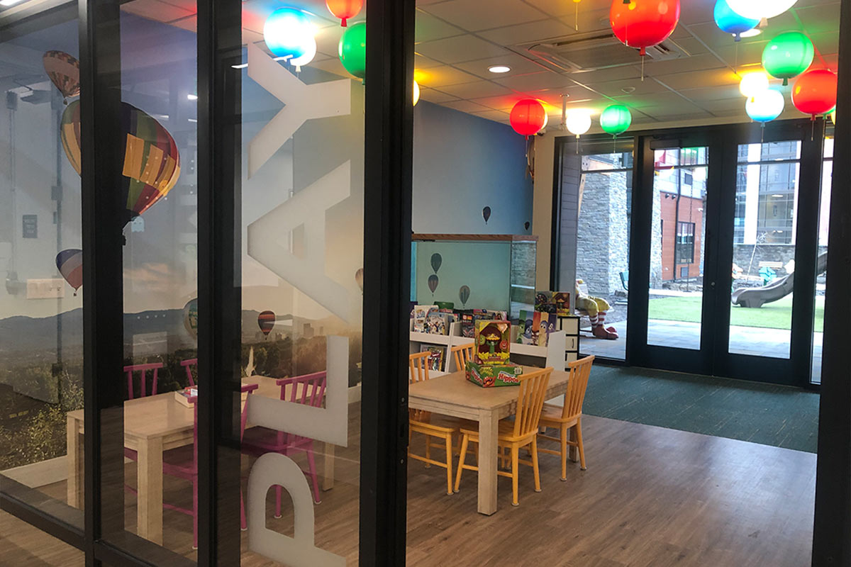 The playroom can be utilized for younger children to play and gives a chance for parents to step away.