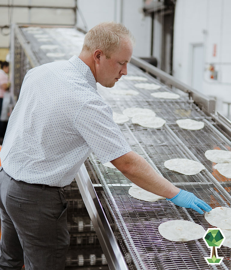 In their Fruitland warehouse, the production of each tortilla is as streamlined yet grounded in human connection as possible. There are few preservatives added into the dough mixture, giving them their signature, homemade flavors. With a few pieces of machinery to mix the dough, section into perfect portions, flattened into the desired sizes, and finally cooked, each tortilla is made like the one before it, assuring you the same classic taste every time. In between the machines, one of Rodriguez's team members is watching over, quality testing, and assuring that production is going as planned. Once cooked, the tortillas are hand-counted and packaged. The machines do the heavy lifting so that the utmost care and attention can be intentionally given to each tortilla.