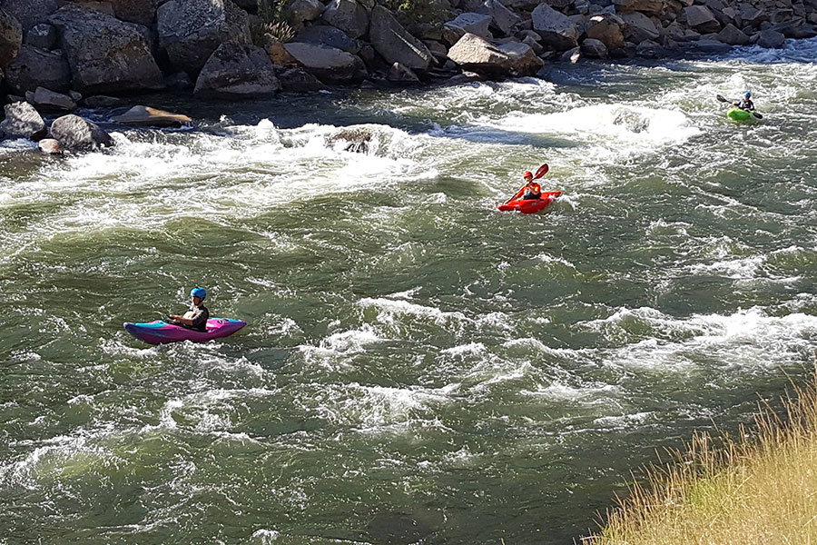 This is a fun float for more experienced paddlers. Launch at Barber Park and takeout at the Anne Morrison raft takeout. There is a small rapid very early on in the float, which can intimidate younger paddlers, and another small rapid roughly halfway through. Fishing for trout is fantastic through this stretch. Work the undercuts and deeper bends in the river with Rapala-style crankbaits to convince the numerous trout to bite.