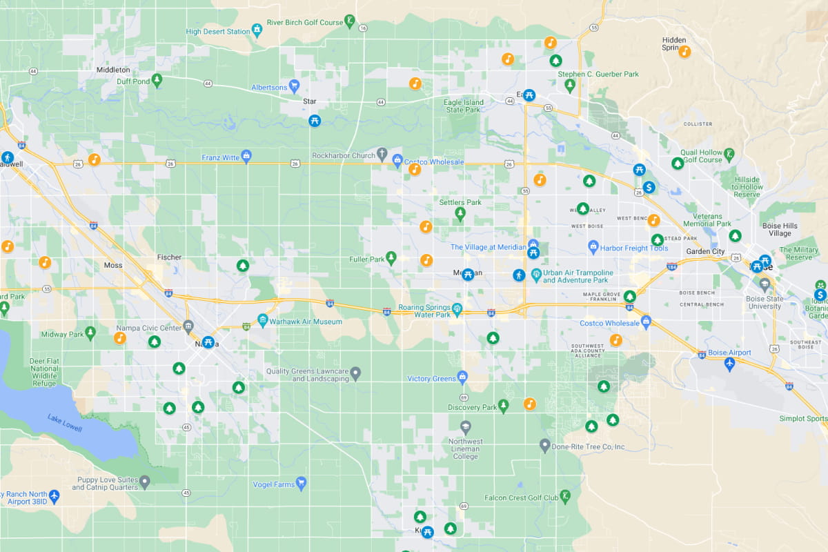 Click below for a map of Christmas light displays in Boise, Meridian, Eagle, Nampa, and surrounding Treasure Valley areas.