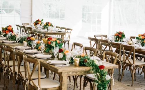 - Rentals: Table/Linens/Chairs FULL staff and set up/take down included in price